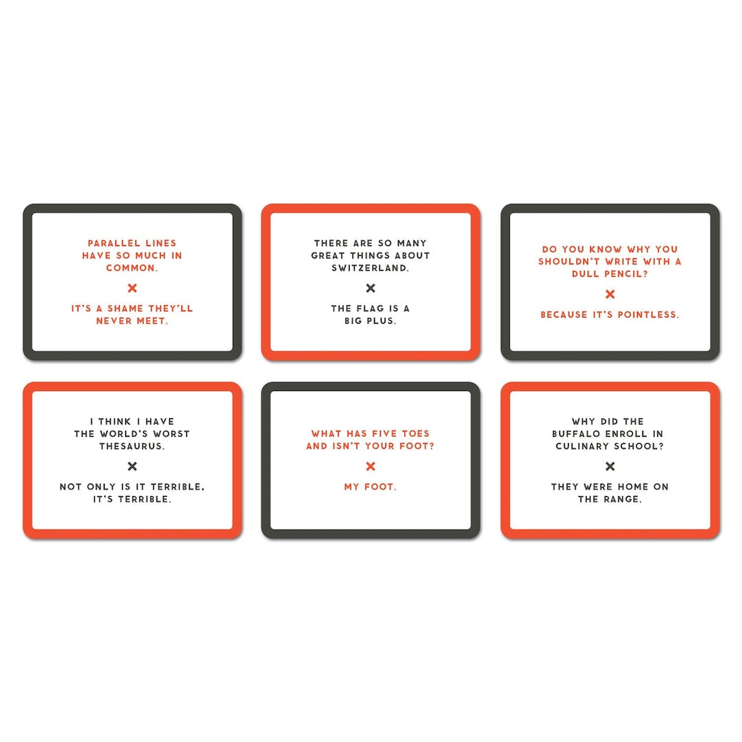 100 double-sided cards–each featuring a dad joke on the front and a place to add a little additional ‘wisdom’ on the back.
